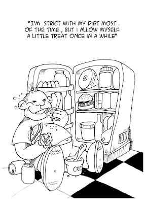 Tradução: Eu cumpro a minha dieta de forma rigorosa, a maior parte das vezes, mas permito-me a uma pequena estragação de vez em quando.